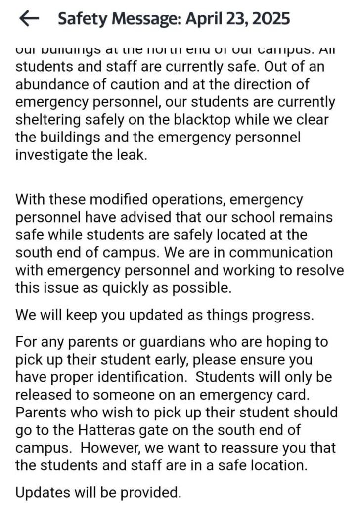 An email sent out to parents obtained by The Odyssey mentioned parents were allowed to be picked up by parents or guardians at Hatteras Gate by presenting a valid ID.